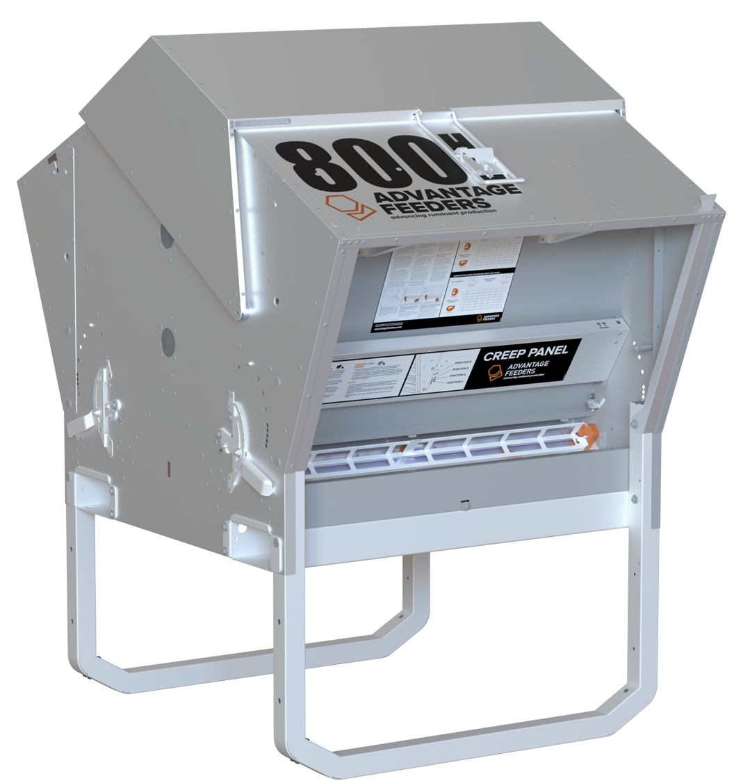 Advantage Feeders have multiple adjustment setting options. These include, Ad-lib Feeding, Controlled Feeding and Creep Feeding. Creep Panels come standard with all sheep sized feeders and Creep Gates can be added to achieve optimal calf creep feeding success. The design of the Creep Panel can be set to allow both ewes and lambs to use the grain feeder at the same time from different sides of the feeder. Advantage Feeders range of pellet feeders are built to last and we offer a 2-year warranty on all products.